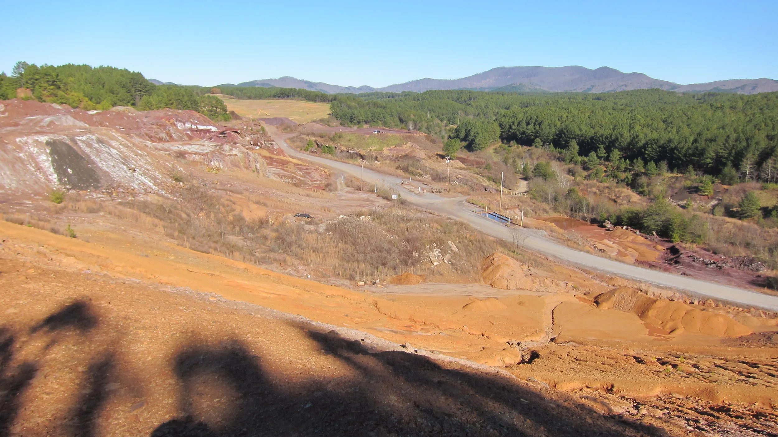 As I hiked along the dusty gravel roads back to the spot where I'd hidden my truck, I could see pine shadows stretching long across the eroded gullies of the mine spoils. The orange creek water flowing lazily through the valley below me glistened in the warm light of sunset.